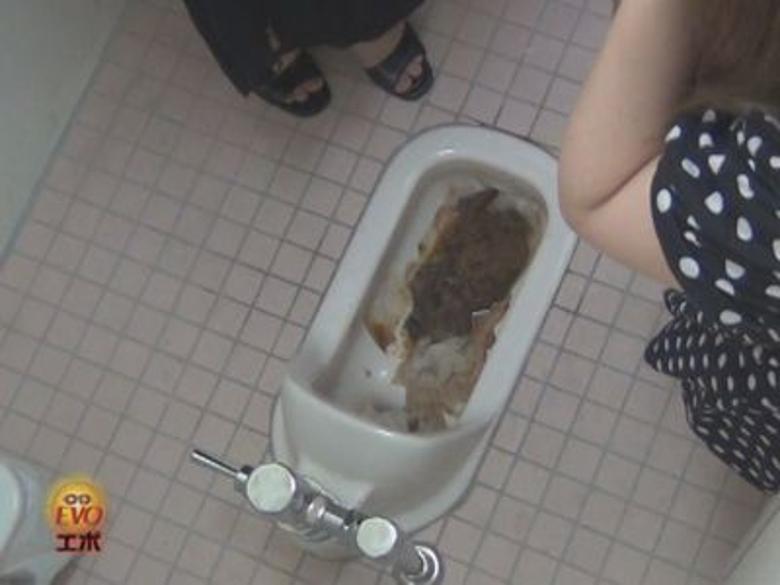 某施設トイレの水洗機能を壊し2台のカメラを使い、女が入ってくるのを待ち続けた。排便しその後流そうとするが全く水が流れず、慌てて個室から逃げ出していく女。他人の大便が残った便器を前に困惑を隠せない女たちが意を決したように、次々とその上に排便していく、かなりの激臭なのか悶えながら排便するのが印象的だ。まるで地獄絵図のように変貌していく便器を堪能してもらいたい。【JADE独占】